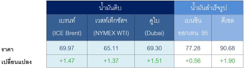ตารางราคาน้ำมันเฉลี่ยรายสัปดาห์ [เหรียญสหรัฐฯ ต่อบาร์เรล]